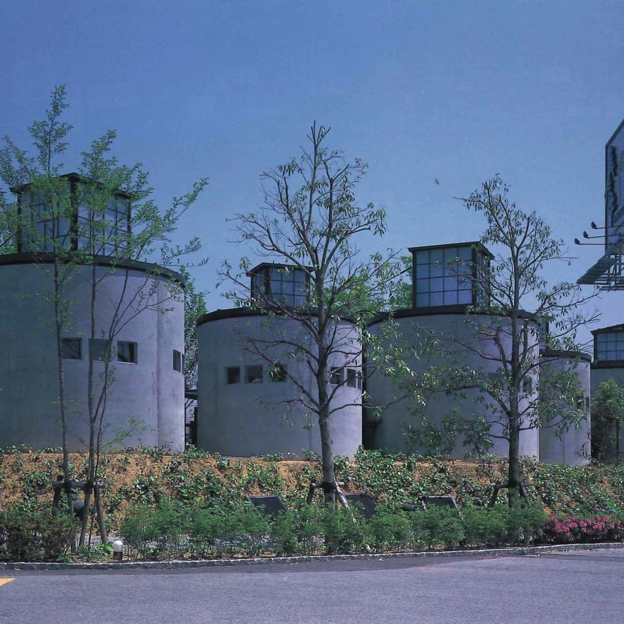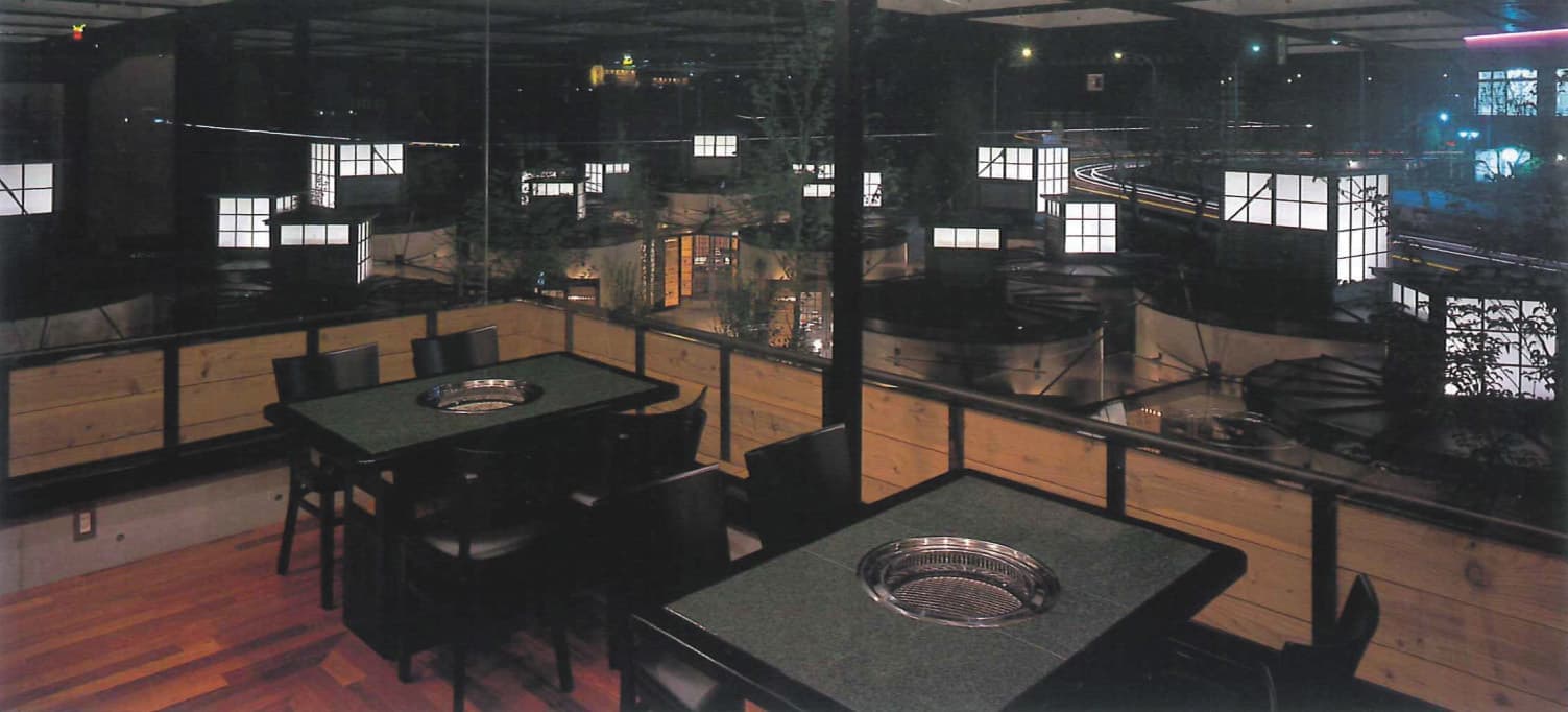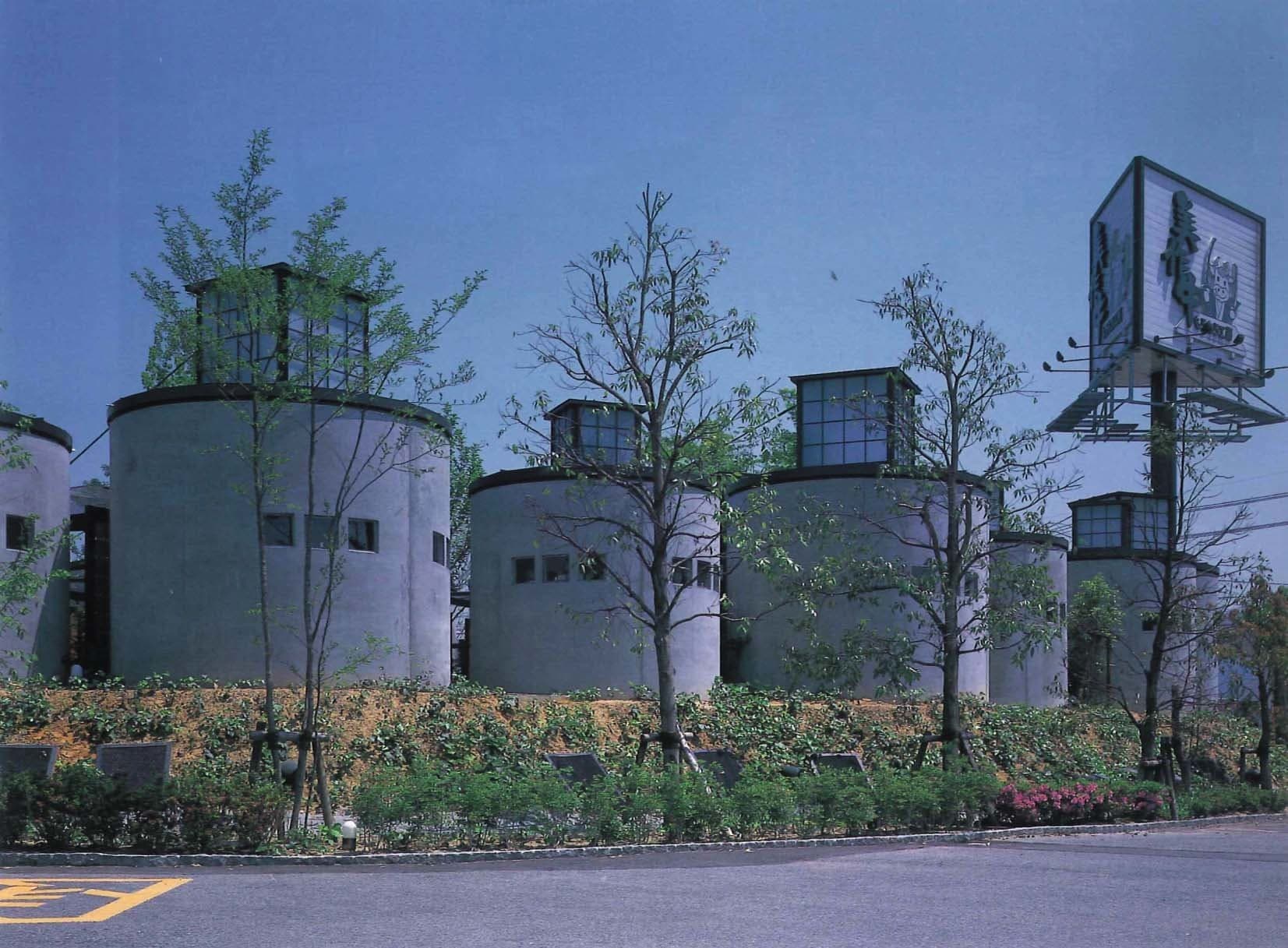 自己発信する商業施設 鎮守の森 もうもう工房レストラン/Mou Mou Kobo 1999 岡山県栄田郡/Sakaeda District, Okayama ヒューム管を利用した客席が林立する焼肉レストラン/Yakiniku restaurant